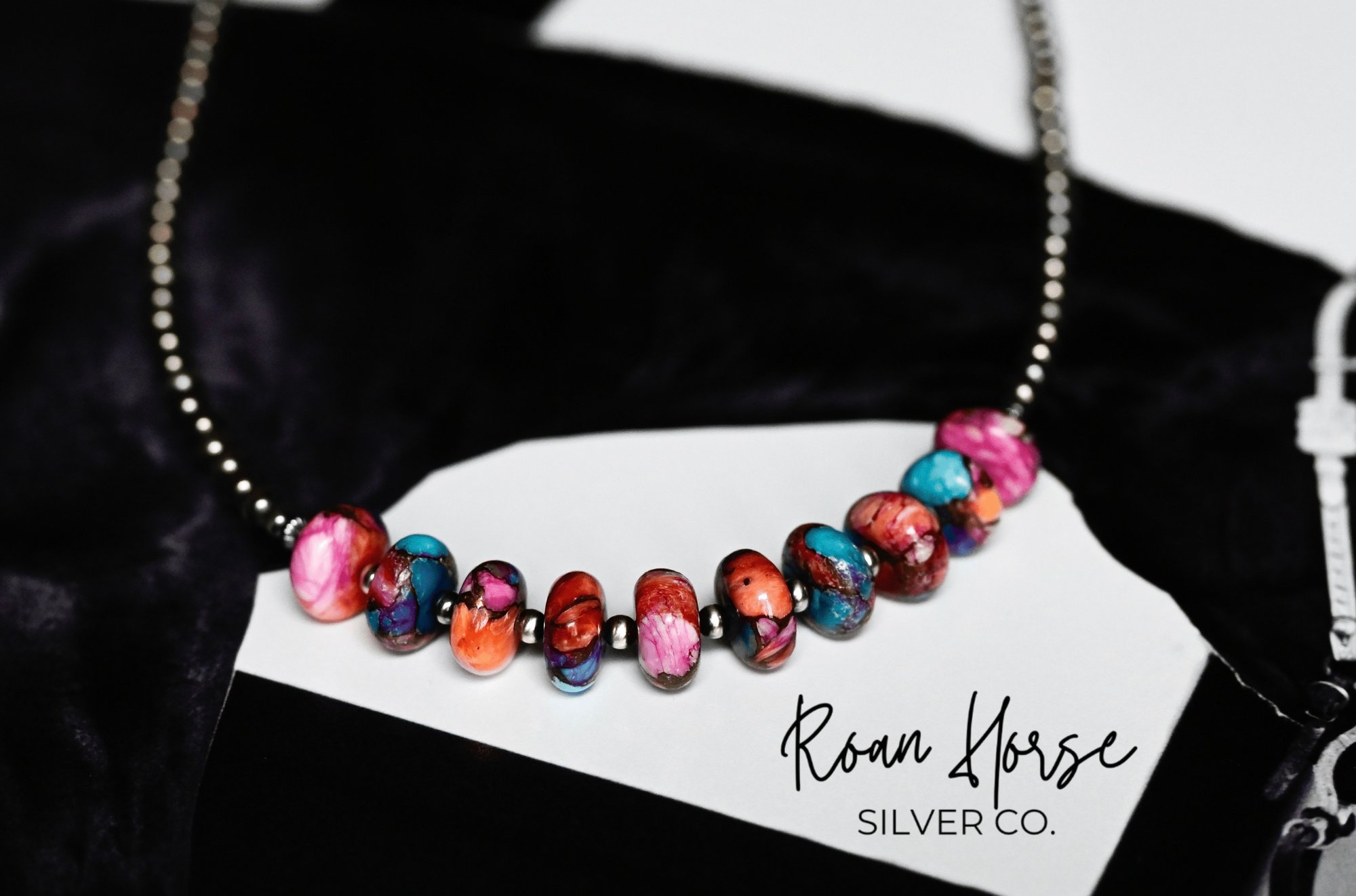 16" 4mm Navajo pearls finish out the look. Hand strung in Texas.