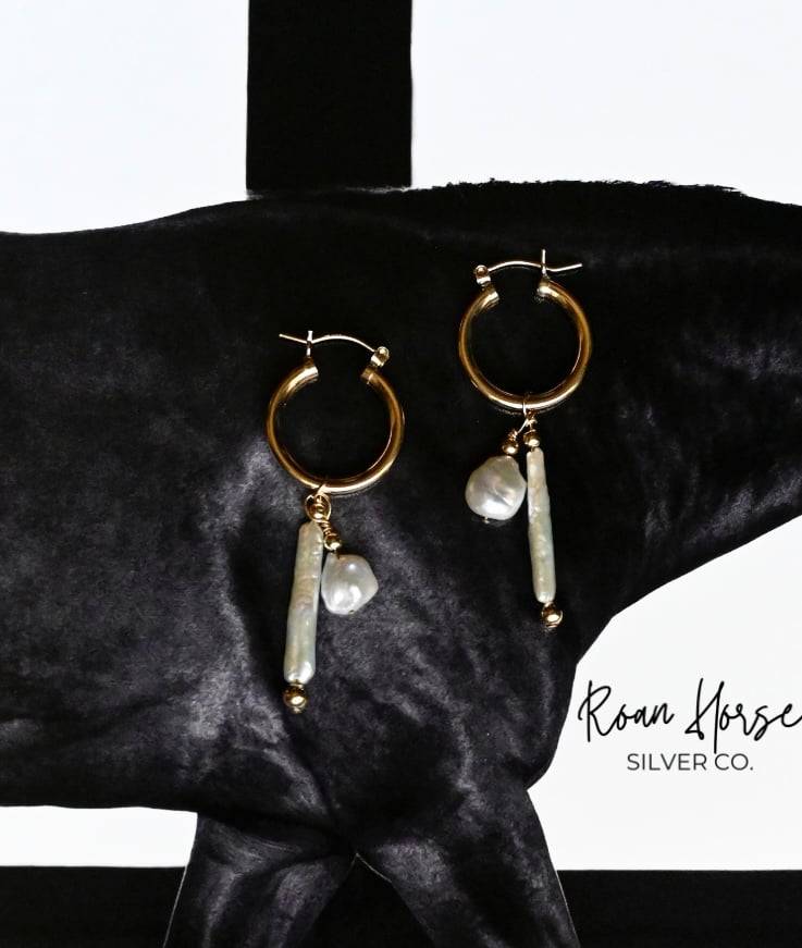 These light weight gold filled hoops are paired with freshwater pearls in a fun yet classic way. Measures a little over 3/4'' wide by 2 1/8'' long.
